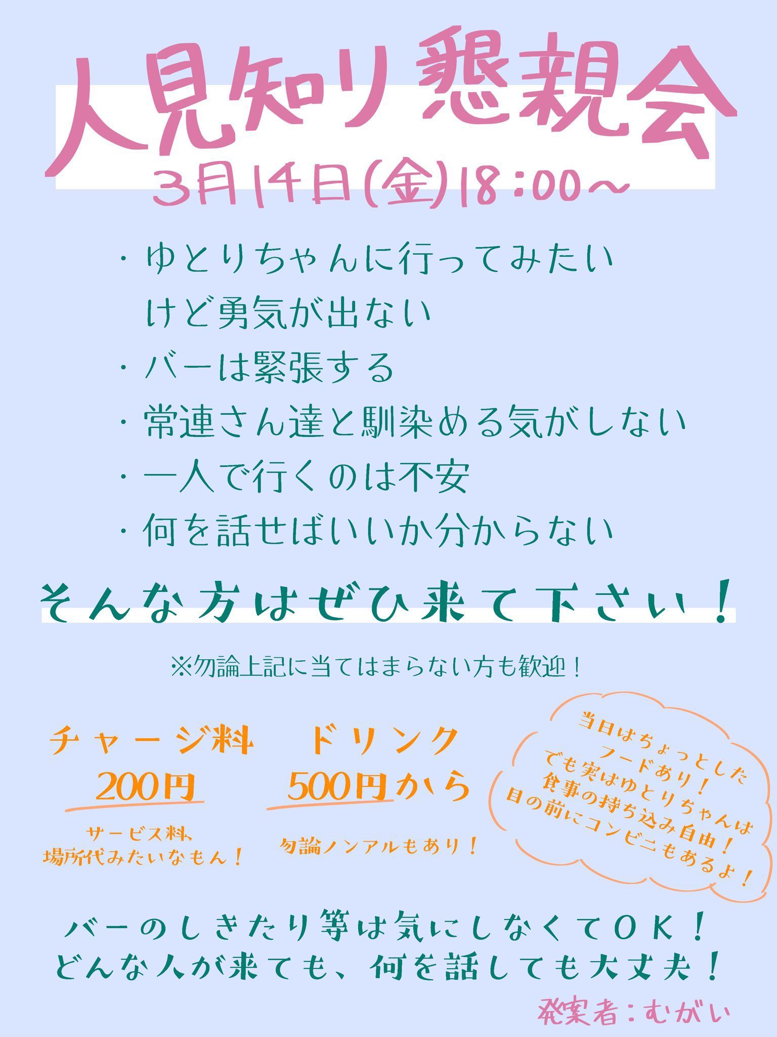 February 10, 2024 | あなたの推しのイメージカクテル、どんなキャラでも作ります。charge/¥1000(通常ドリンク1杯のみ)【GUEST BARTENDER】ワカ【DJ】指 きゃのん 音夢衣リホ | Oct 3, 2024 11:20 AM | ||||||||||
